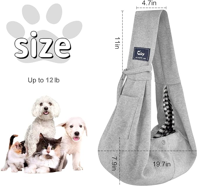CUBY Dog and Cat Sling Carrier - Hands Free Reversible Pet Papoose Bag - Soft Pouch and Tote Design - Suitable for Puppy, Small Dogs Cats Outdoor (Classic Grey)