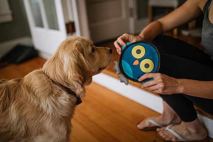 Hyper Pet Firehose Flyers Owl Durable Squeaky Dog Toy Grey 7.5 x 1.2 x 8.2 inches