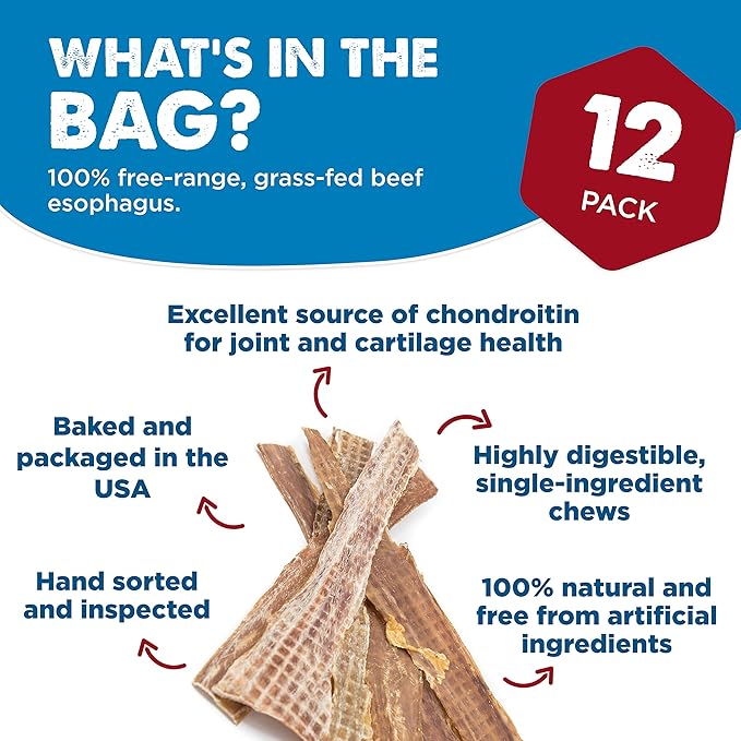 Best Bully Sticks 12 Inch Joint Jerky Gullet Dog Treats (12 Pack) - All-Natural Beef Dog Treats