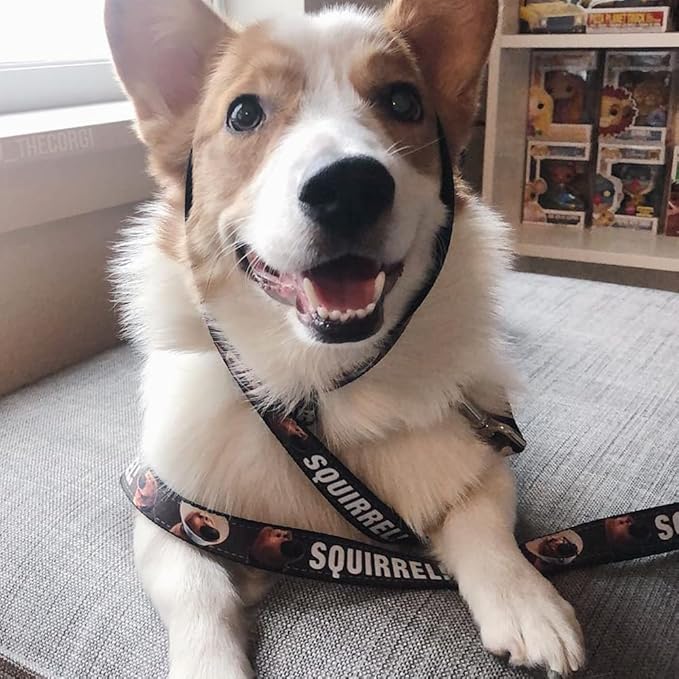 Buckle-Down Pet Leash - Dug 3-Poses/SQUIRREL! Brown/Yellow/White - 4 Feet Long - 1" Wide