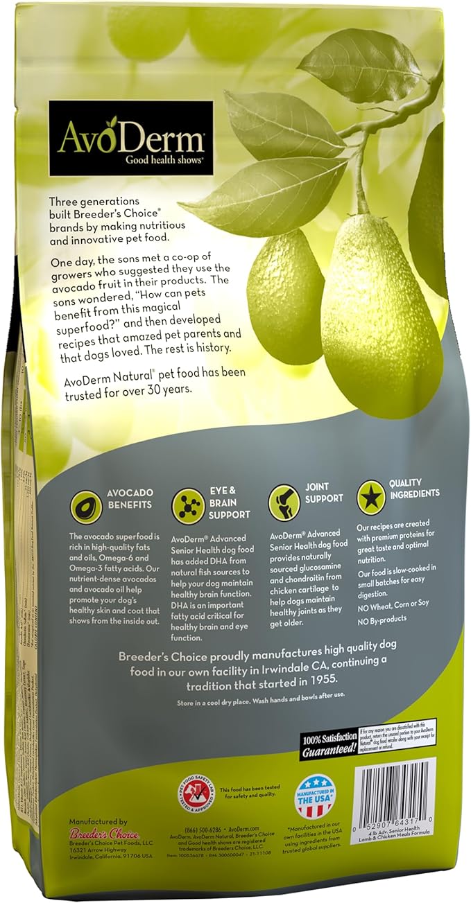 • One (1) 4 Pound Bag: AvoDerm Natural Advanced Senior Health Grain Free Lamb Meal Dry Dog Food