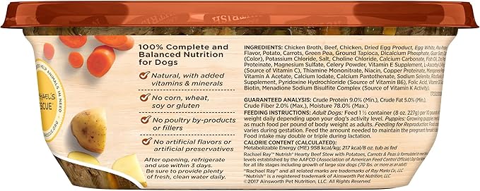 Rachael Ray Nutrish Premium Natural Wet Dog Food, Hearty Beef Stew Recipe, 8 Ounce Tub