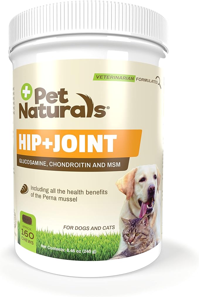 Pet Naturals Hip and Joint Supplement with Glucosamine, Chondroitin and MSM for Dogs and Cats, Duck Flavor, 160 Chews