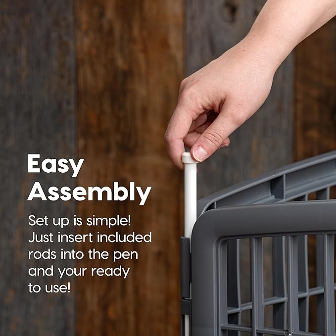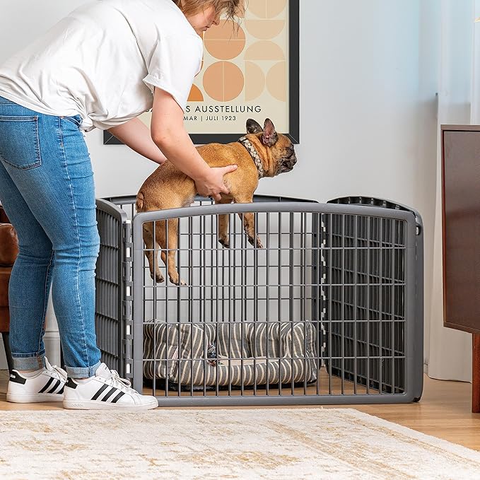 IRIS USA Dog Playpen, 4-Panel 24" Pet Playpen, Puppy Playpen, Indoor/Outdoor Dog Pen, 35 x 35 x 24, Foldable, Customizable, Dark Gray