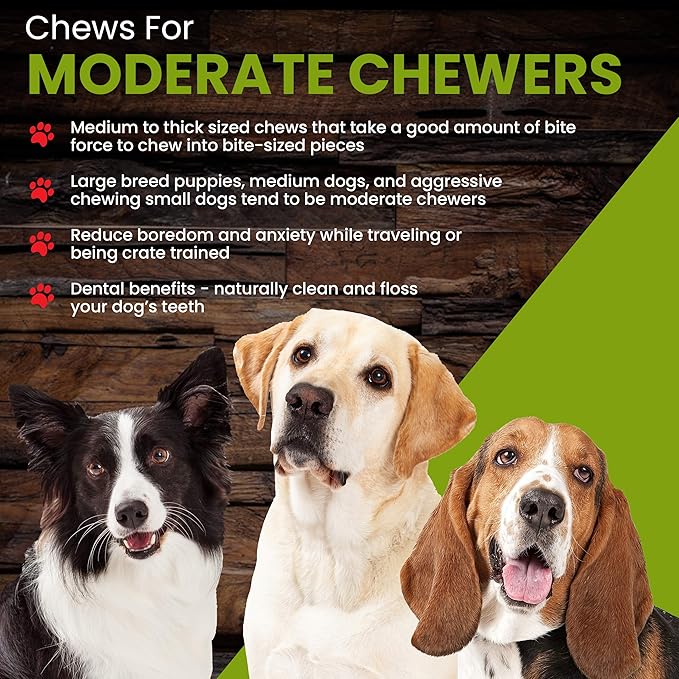 • QUALITY: hand-graded and packed by weight to ensure consistency. Contains 25 moderate odor sticks .75-1.1oz each, best suited for small to medium dogs.
