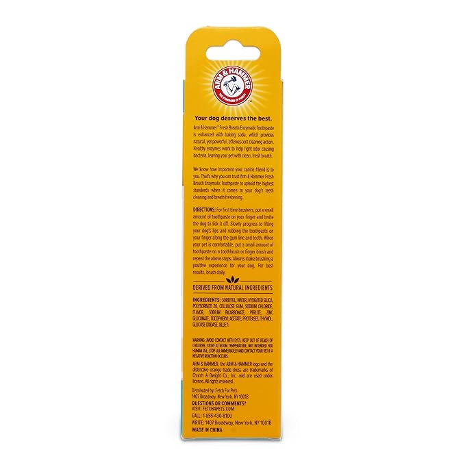 • REMOVES PLAQUE, PREVENTS BUILDUP, FIGHTS STINKY BREATH - Arm & Hammer Fresh Breath dog toothpaste gently, yet effectively, fights bad breath and maintains healthy teeth and gums