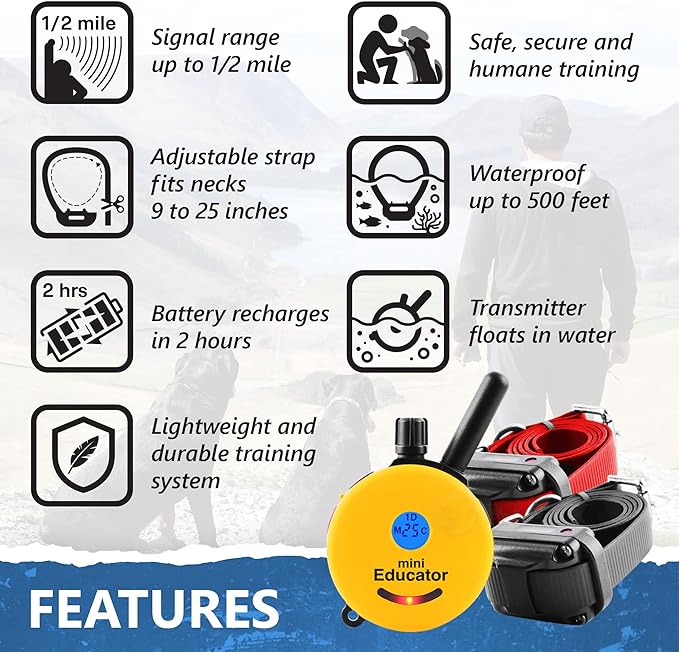 • This two dog training system has up to a half a mile range and fully waterproof with a remote that will float in the water.