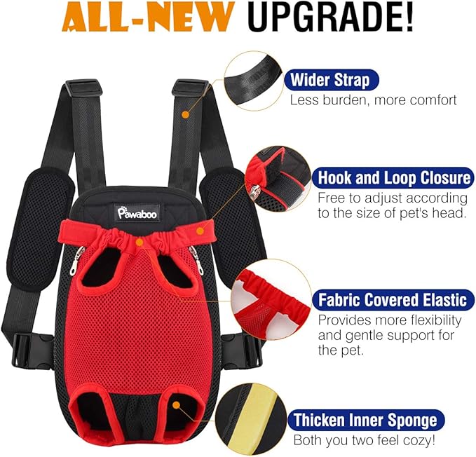 Pawaboo Pet Carrier Backpack, Adjustable Pet Front Cat Dog Carrier Backpack Travel Bag, Legs Out, Easy-Fit for Traveling Hiking Camping for Small Medium Dogs Cats Puppies, Medium, RED