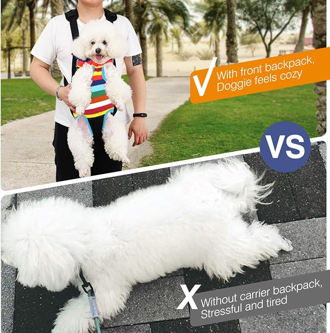 Pawaboo Pet Carrier Backpack, Adjustable Pet Front Cat Dog Carrier Backpack Travel Bag, Legs Out, Easy-Fit for Traveling Hiking Camping for Small Medium Dogs Cats Puppies, Medium, Colorful Strips