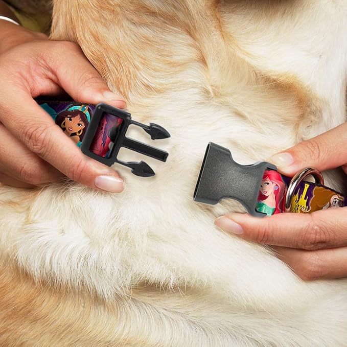Buckle-Down Plastic Clip Collar - Disney Princess Poses/Castle Silhouettes Purples/Multi Color - 1" Wide - Fits 9-15" Neck - Small