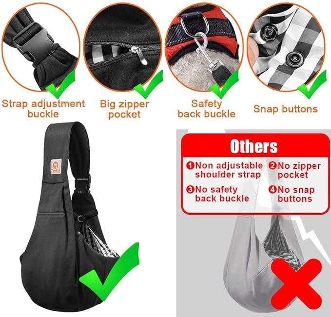 • Large-Capacity Zippered Pockets: Stay organized with TOMKAS's front zippered pocket that can store all of your essentials, such as your phone, keys, cards, wallet, and dog leash. Our reliable carrier is designed with your convenience in mind. Unlike other dog slings without zippered pockets, our pocket keeps your belongings secure throughout use.