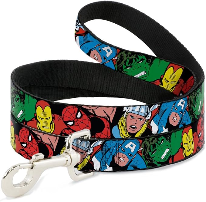 Buckle-Down Dog Leash 5 Marvel Characters Black 6 Feet Long 1.0 Inch Wide, Multicolor (DL-6FT-WAV002)