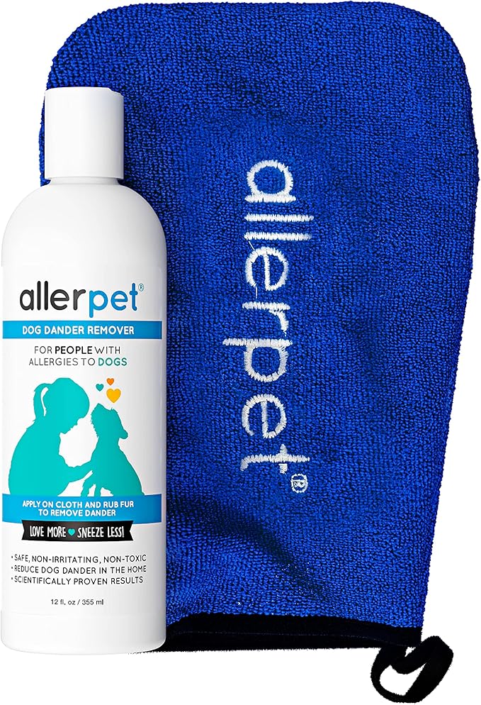 Allerpet Dog Dander Remover w/Free Applicator Mitt - Pet Dander Remover for Allergens - for Canine Dry Skin Treatment - Good for Fur & Skin - (12oz)
