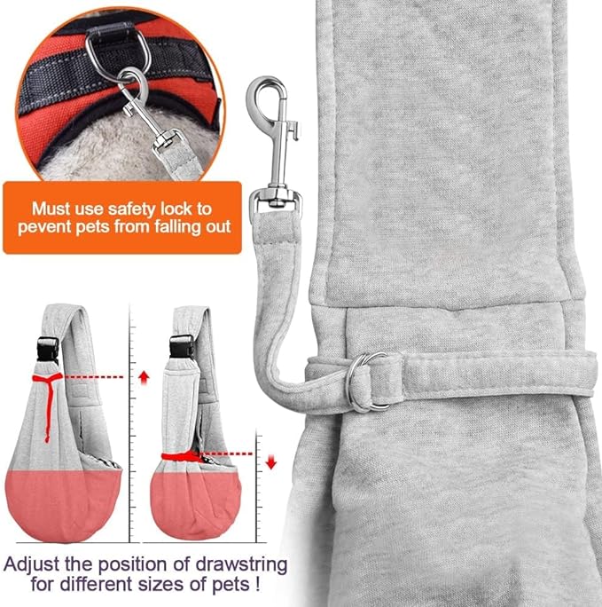 • Sufficient safety: pets can be easily put into TOMKAS small dog carrier sling after a brief acclimation. You just put your dog in it, attach the safety buckle to the leash buckle on the vest or harness. If your pet wants to jump out of the pouch, the safety belt will stop it from this dangerous behavior and keep your puppy safe. TOMKAS small dog sling is very reliable in terms of safety.Remember, never tie the safety buckle to the collar, it could hurt the dog's neck if it jumps out.