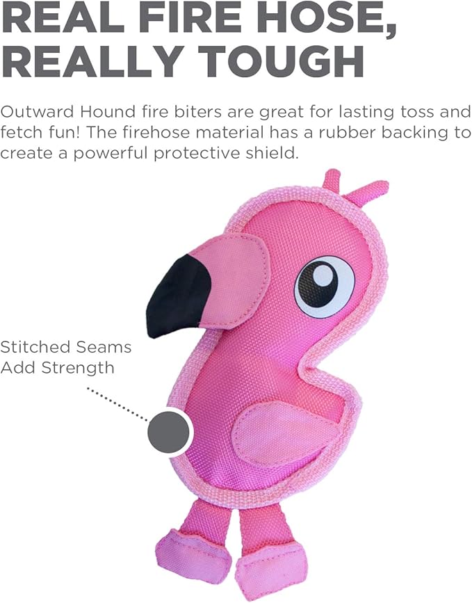 Outward Hound Fire Biterz Flamingo Plush Firehouse Material Interactive Dog Toy, Small