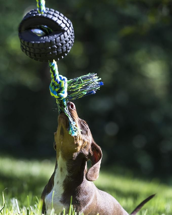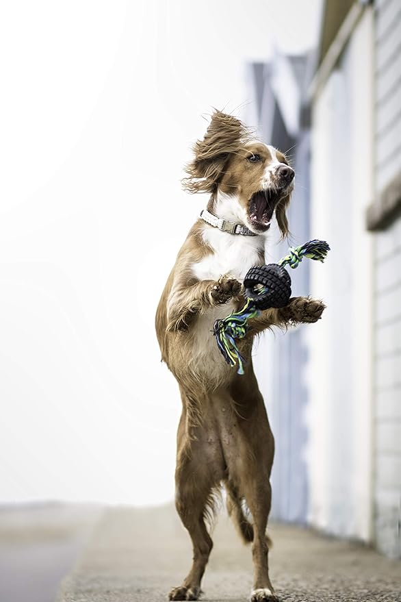 Pet Qwerks X-Tire Ball Dog Toys - Rope Interactive Chew Toy - Medium
