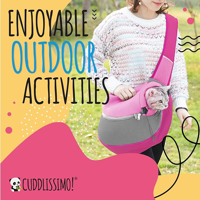 • 🐶 PERFECT FOR SMALL PETS - Cuddlissimo! pet sling carrier is designed for small and teacup dogs or cats, up to 6 pounds in weight. This dog sling has a padded bottom, and the neck opening is fully adjustable.