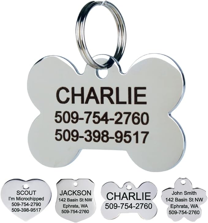 GoTags Dog Tags Personalized Engraved Pet ID Tags, Stainless Steel, Front and Backside Engraving, Available in Bone, Round, Heart, Bow Tie and More, Small and Large Dog and Cat (Pack of 1)