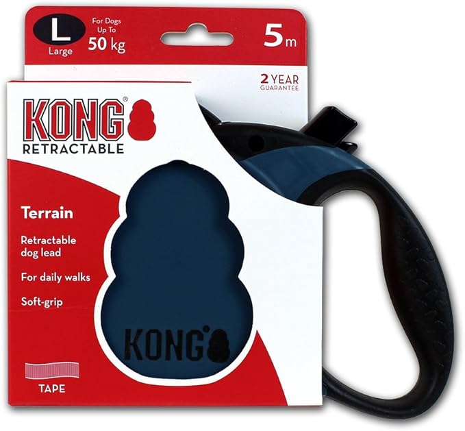 Alcott Kong Terrain Retractable Dog Leash, Large, Blue, 16' Long