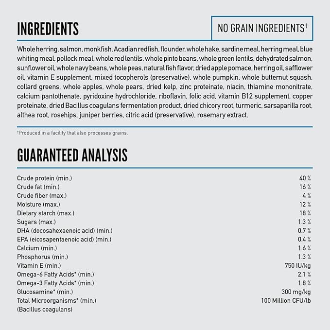 • Orijen six fish dog Food delivers a diet rich and varied in fresh, whole fish ingredients from Atlantic mackerel, herring, monkfish, Acadian Redfish, Flounder, and silver hake