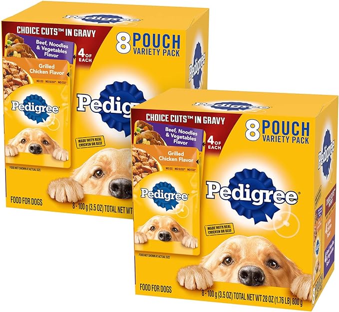 PEDIGREE CHOICE CUTS IN GRAVY Adult Soft Wet Dog Food 8 Count Variety Pack, 3.5 oz Pouches, (Pack of 2)