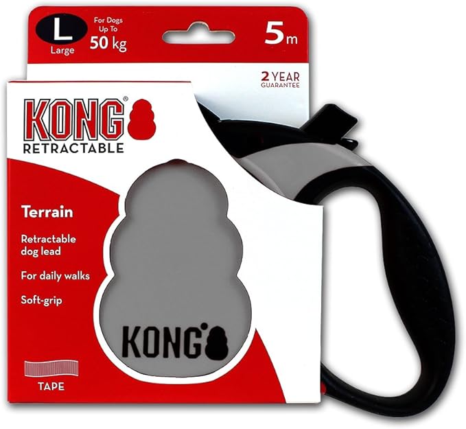 Alcott Kong Terrain Retractable Dog Leash, Large, Grey, 16' Long