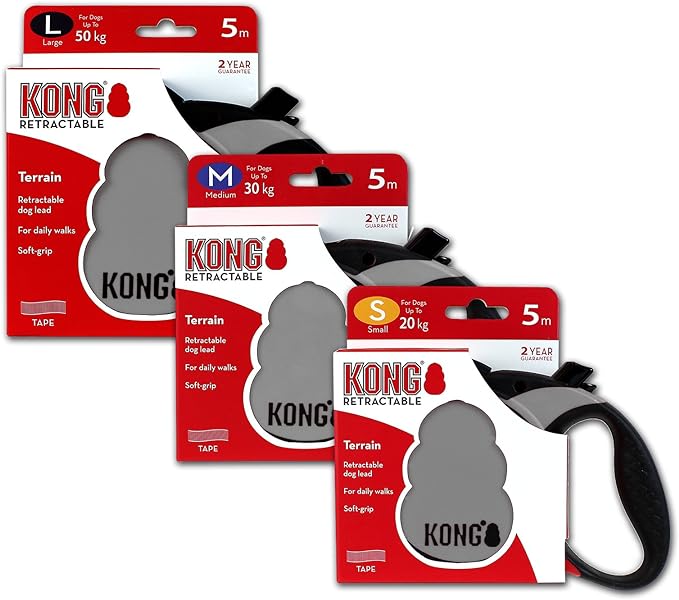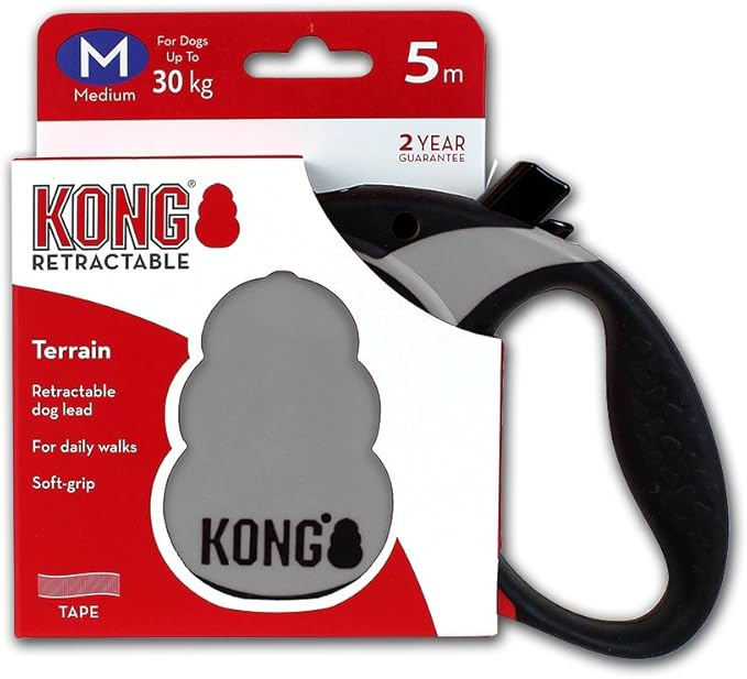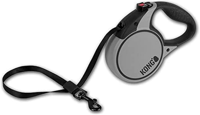 Alcott KONG Terrain Retractable Dog Leash, Medium, Grey, 16' Long.