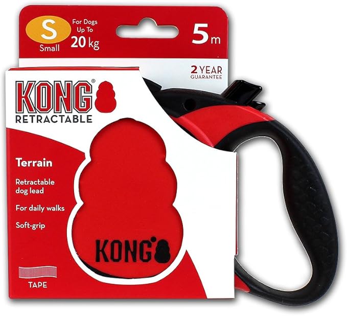Alcott KONG Terrain Retractable Dog Leash, Small, Red, 16' Long