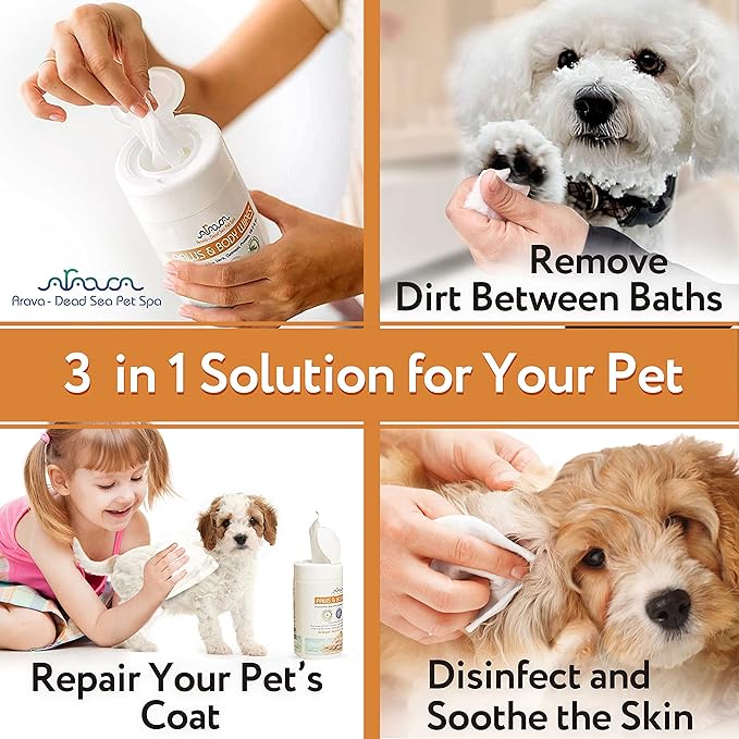 • GENTLE AND SOFT - Arava wipes are mild enough for everyday use. Made with 26 Dead Sea minerals, this cleansing and deodorizing formula gently refreshes your dog or cat’s coat and skin.