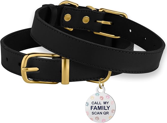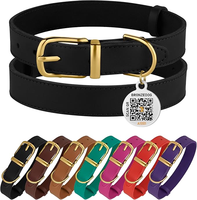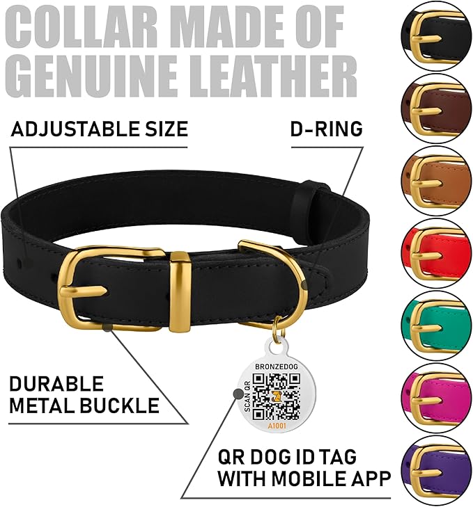 BRONZEDOG Leather Dog Collar with Metal Buckle Durable Basic Pet Collars for Small Medium Large Dogs (13-16 Inch (Pack of 1), Black & Gold Buckle)