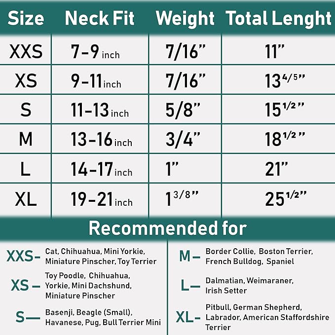 • Neck size is 12 - 16 inch. Total length is 18.1/2". Width is 3/4". Weight is 56 grams.
