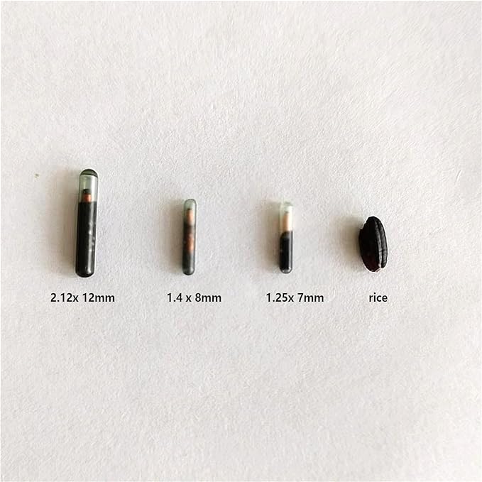 • {ADVICE} : pls choose suitable size for your pets or animals , it is very important . 1.4X8mm microchip suitable for cats ,small puppies ,chicken, duck, owl . for big dogs ,1.4X8 mm and 2,12X12 mm both sizes are ok . 2.12X12mm size microchip , it is suitable for big dogs ,horse , cattles , sheeps, pigs, camels and other big animals , 1.25X7mm size for small fishes , mouses, hamsters, snakes,frog ,pigeon and other very small animals
