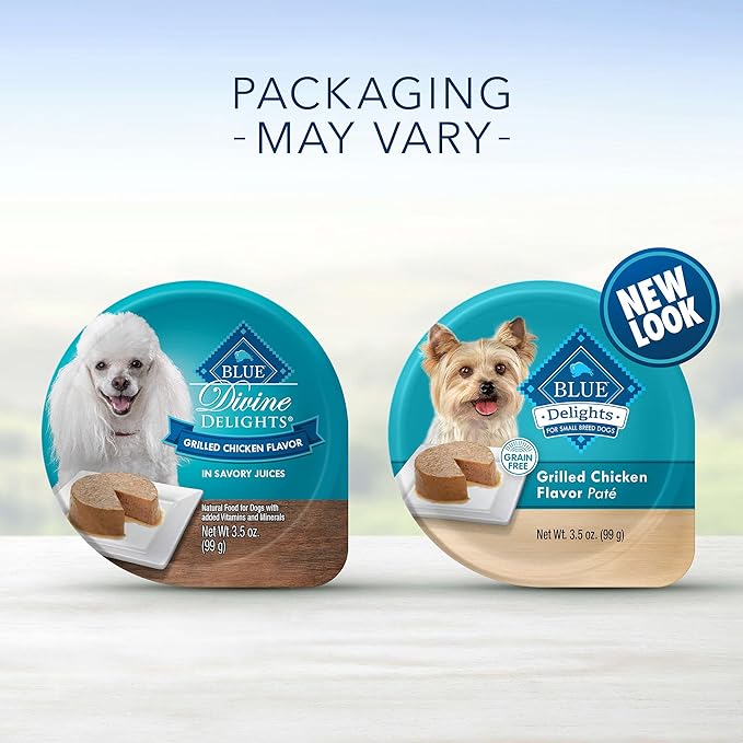 Blue Buffalo Delights Natural Adult Small Breed Wet Dog Food Cups, Pate Style, Grilled Chicken Flavor in Savory Juice 3.5-oz (Pack of 12)