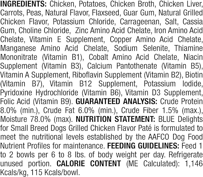 • SINGLE SERVING MEALS: BLUE Delights small breed adult dog foods are perfectly portioned for smaller dogs making them easy and convenient to serve