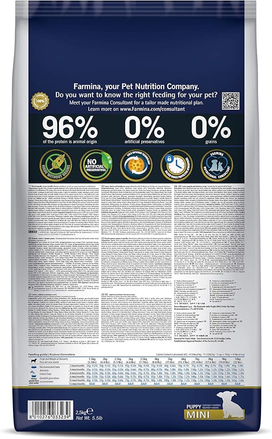 FARMINA Dry Mini Puppy Food, Lamb, Pumpkin and Blueberry Recipe, 5.5 lbs