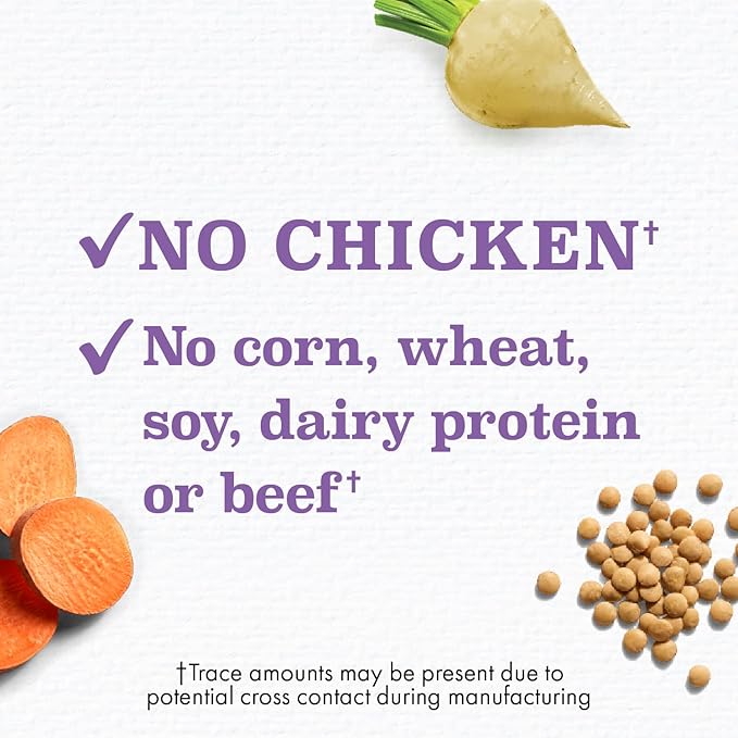 • NUTRO Limited Ingredient Diet Recipes are grain free, and avoid ingredients that commonly cause food sensitivities in pets like chicken, corn, wheat, soy and dairy protein.