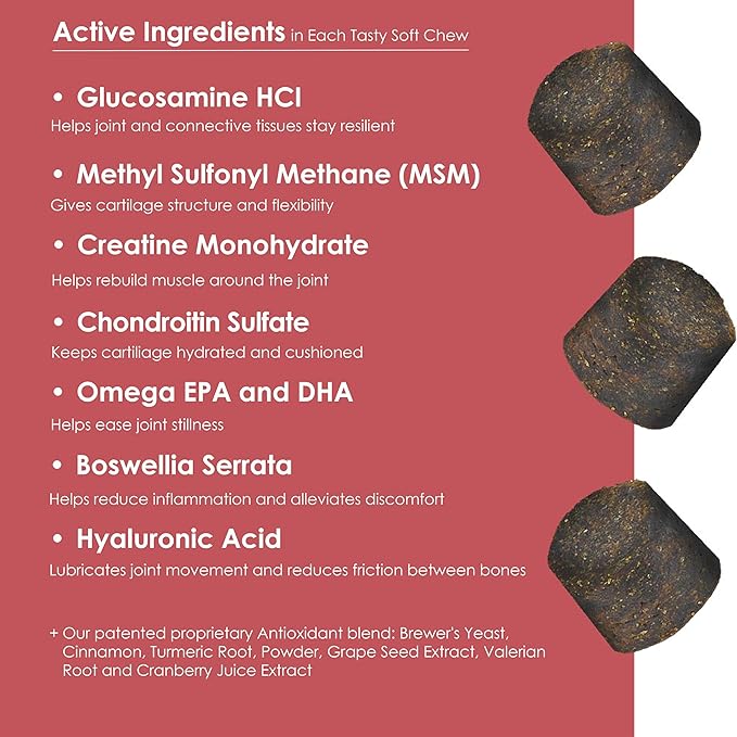 • OUR PROPRIETARY BLEND OF INGREDIENTS IS BACKED BY SCIENCE: Joint MAX is a quality hip & joint supplement for dogs at any stage in life. Our soft chews help ease everyday joint stiffness, arthritis pain and support joint structure. Joint MAX offers a convenient and tasty way to provide essential joint care.
