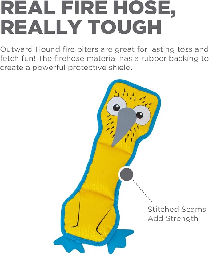 Outward Hound Fire Biterz Boobie Bird Plush Firehose Material Interactive Dog Toy, Medium