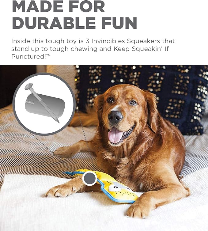 • INTERACTIVE FUN: The bright colors, squeaker, and shape of this toy plays on your dog's natural instincts and prey drive for hours of fun.