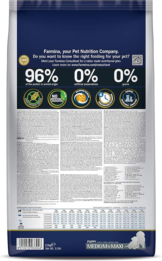 Farmina N&D Dog Dry Puppy Grain-Free Pumpkin Medium/Maxi Lamb & Blueberry 5.5 Pounds