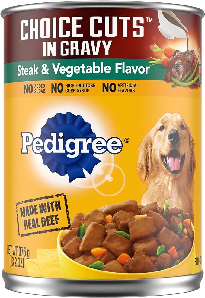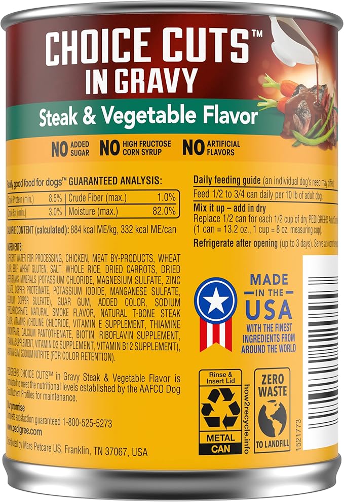 PEDIGREE CHOICE CUTS IN GRAVY Adult Canned Soft Wet Dog Food, Steak & Vegetable Flavor, 13.2 oz. Cans (Pack of 12)