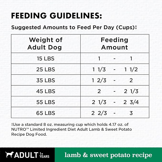 • Contains one (1) 4 lb. bag of NUTRO Limited Ingredient Diet Adult Dry Dog Food Lamb & Sweet Potato.