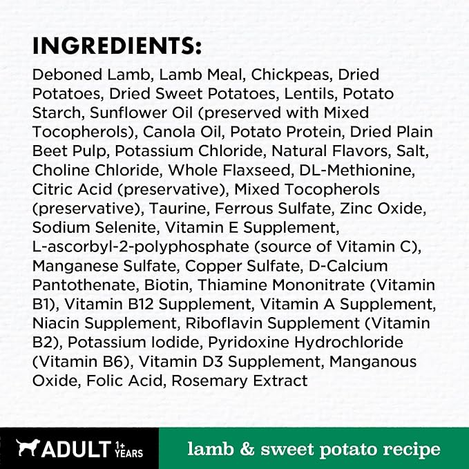 • Lamb is the #1 ingredient in this healthy dog food. Contains no chicken and no beef.