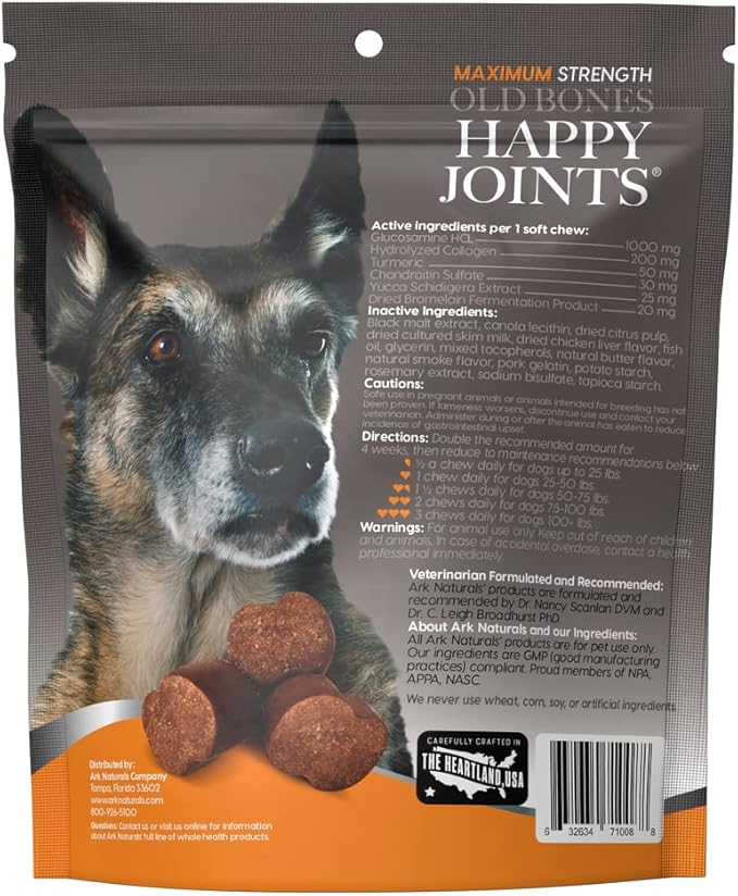 ARK NATURALS Gray Muzzle Old Dogs Happy Joints Chews for Large Breed Dogs, Vet Recommended to Support Cartilage and Joint Function, 500 mg Glucosamine, 16.5 oz Bag, Packaging May Vary (71008)