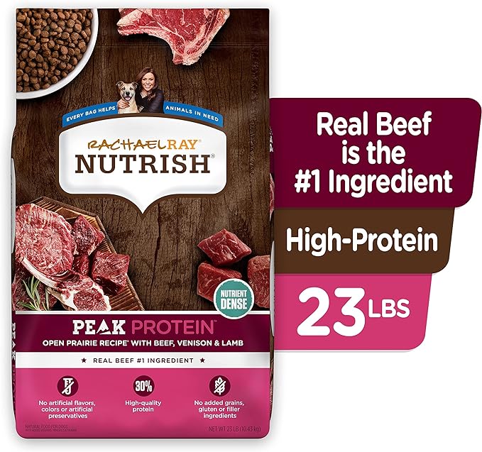 Rachael Ray Nutrish PEAK Natural Dry Dog Food with Added Vitamins, Minerals & Taurine, Open Prairie Recipe with Beef, Venison & Lamb, 23 Pounds, Grain Free (Packaging May Vary)