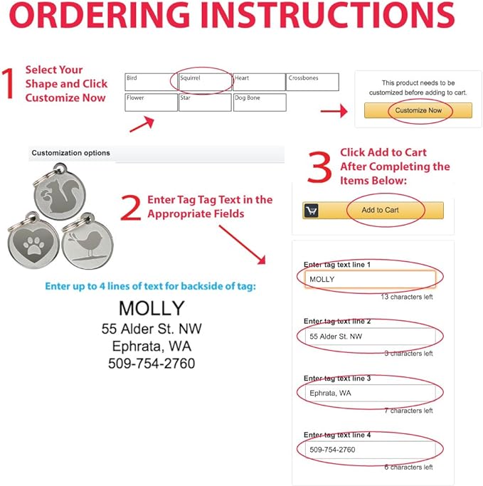 • To order click customize now where you can select your design and add your personalization details to the tag. When finished customizing click add to cart.