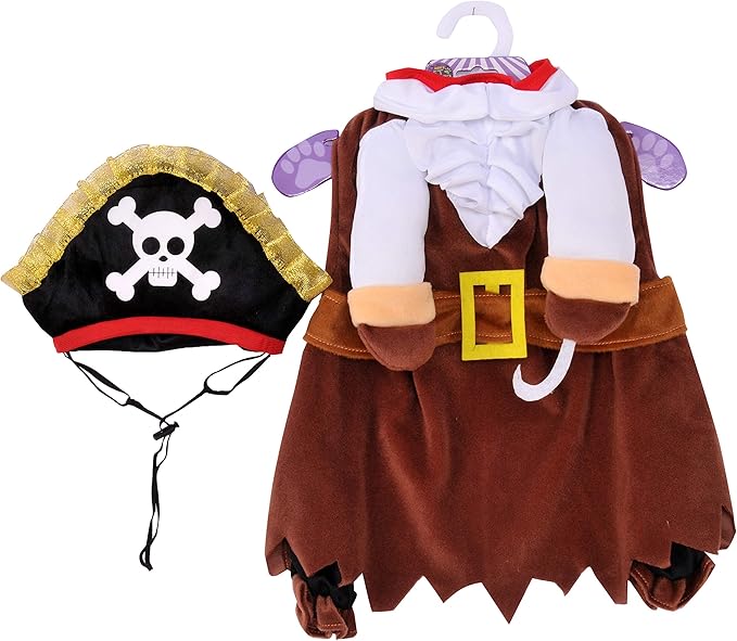 • Walking pirate pet costume jumpsuit with false arms and headpiece