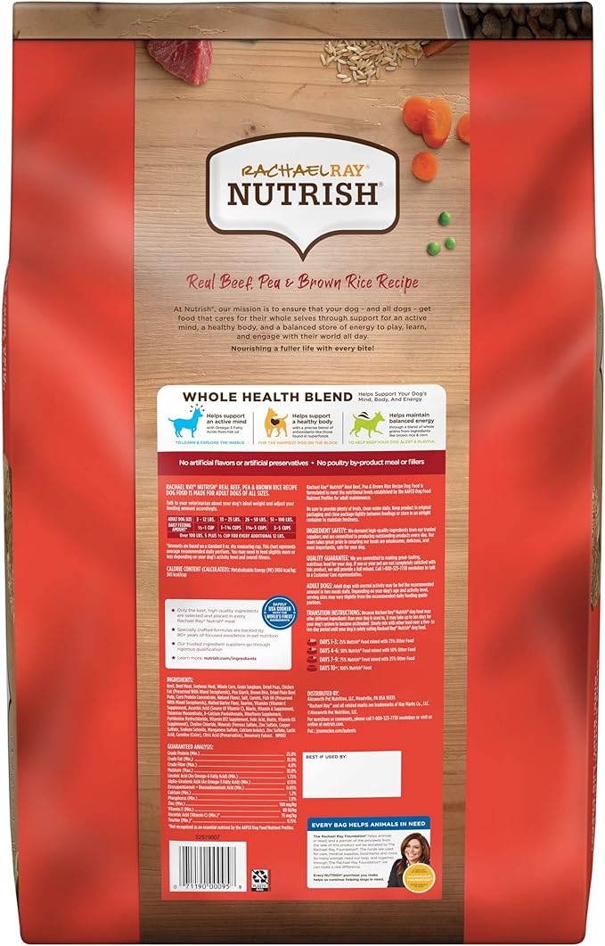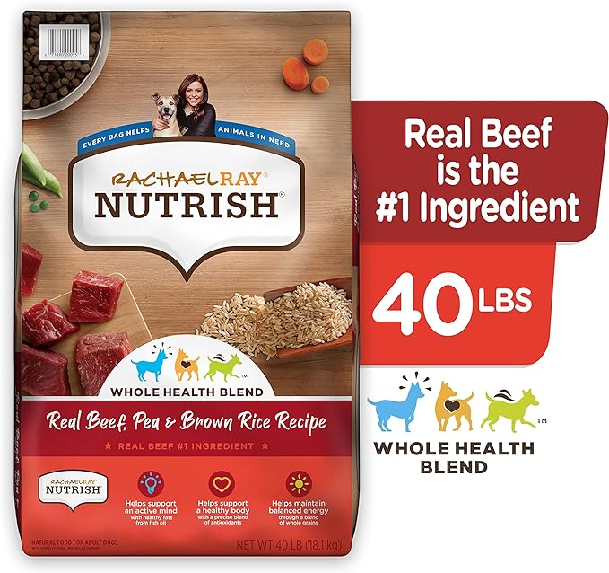 Rachael Ray Nutrish Premium Natural Dry Dog Food with Added Vitamins, Minerals & Taurine, Real Beef, Pea, & Brown Rice Recipe, 40 Pounds (Packaging May Vary)