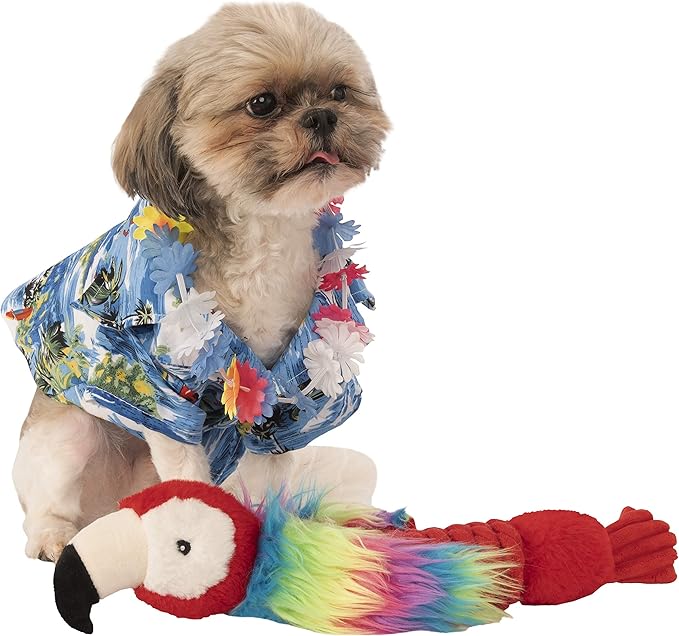 • Luau costume Hawaiian-print shirt with Velcro closure across the chest, coordinating lei included