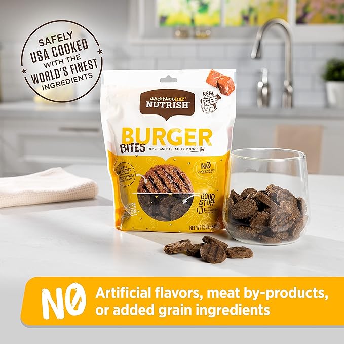 Rachael Ray Nutrish Burger Bites Real Meat Dog Treats, Beef Burger with Bison Recipe, 12 Ounces, Grain Free